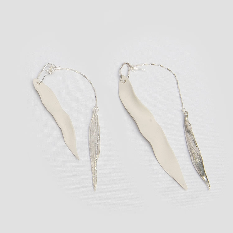 백자와 실버의 조화가 돋보이며 언발란스한 길이가